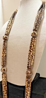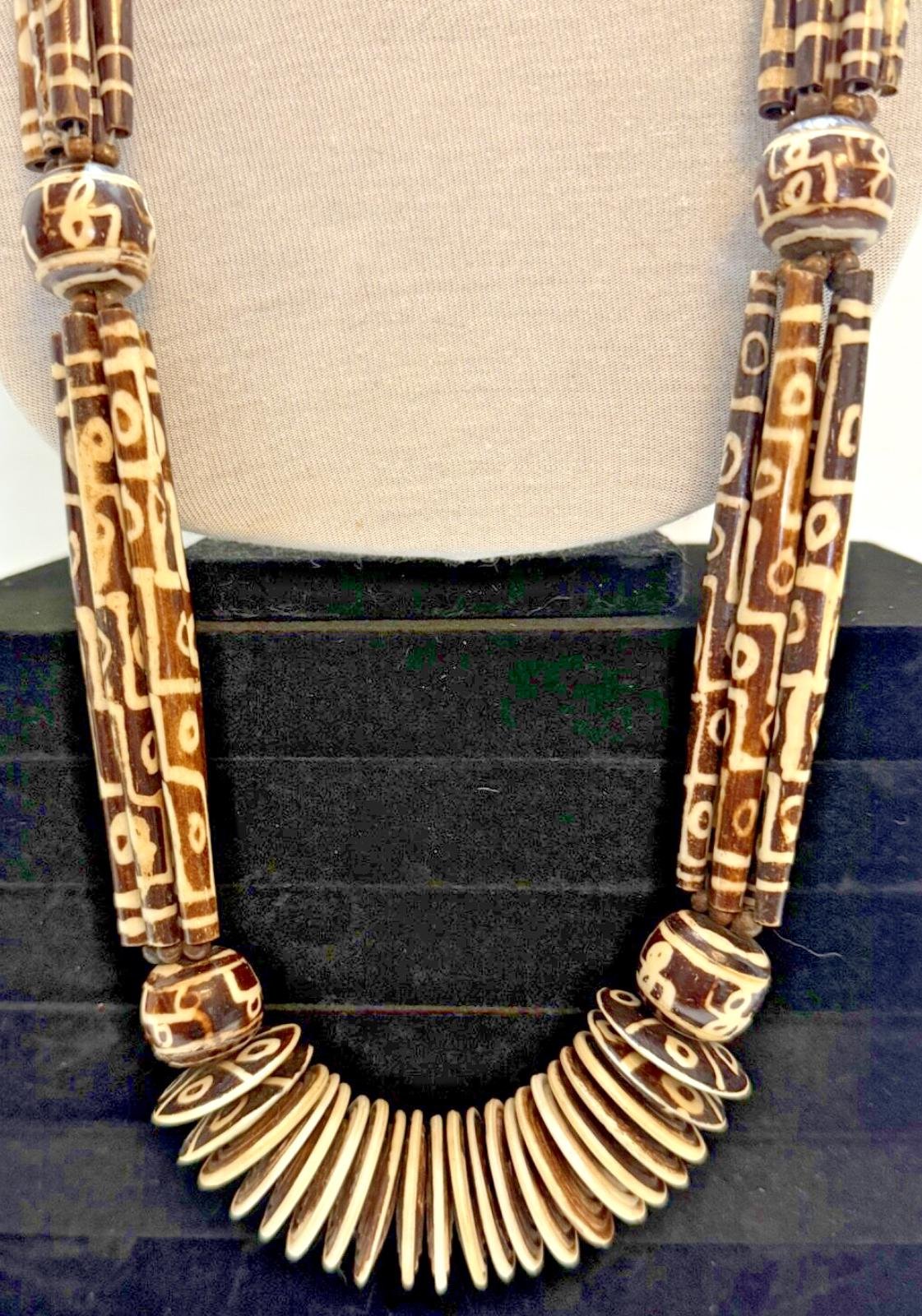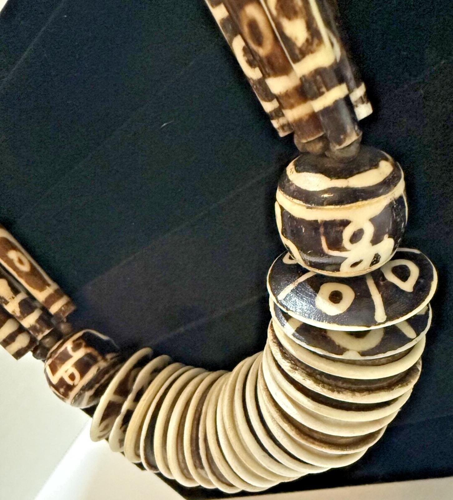 Antique 1850-1900 African Cow Batik Bone Disc Bead Ceremonial Necklace 24" Long