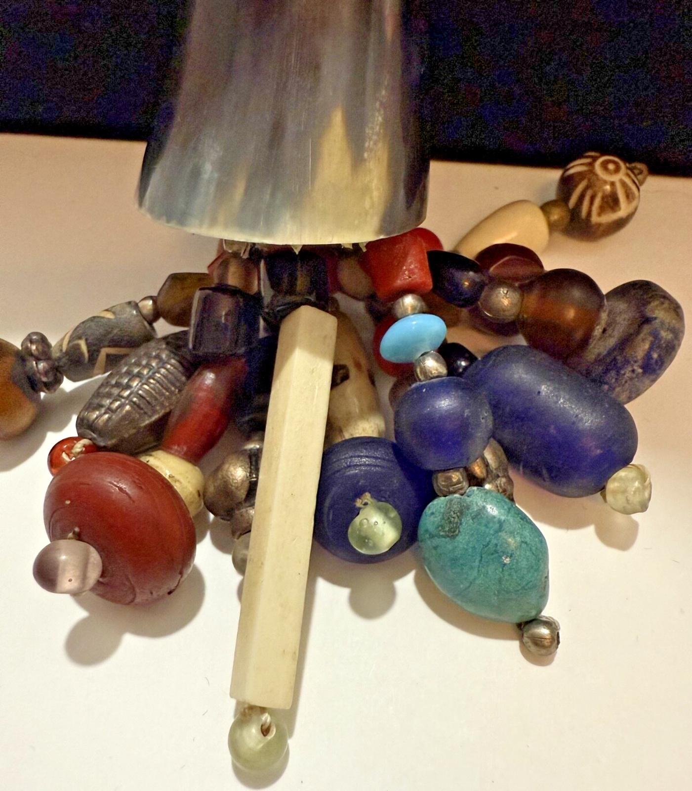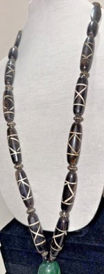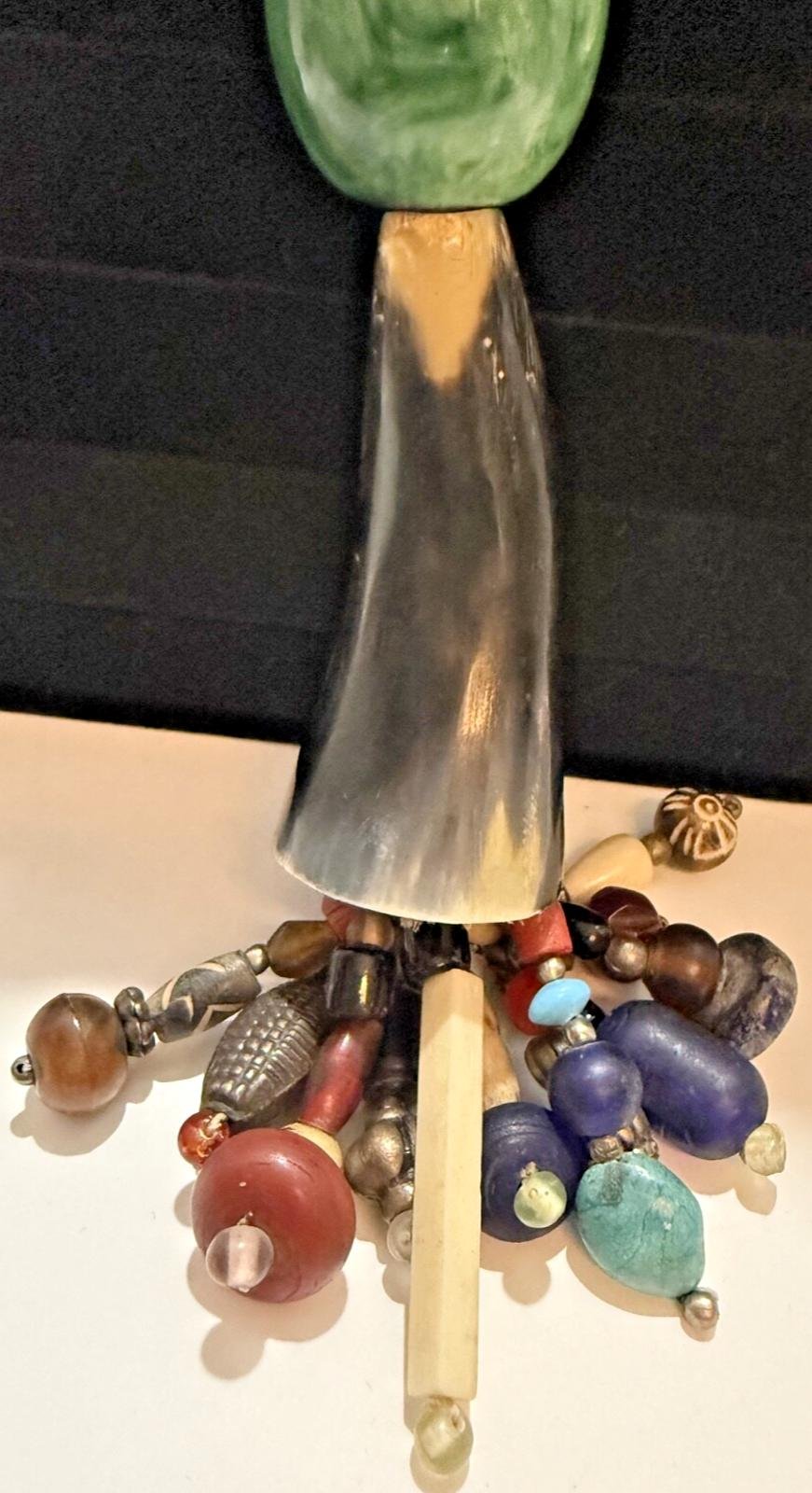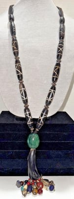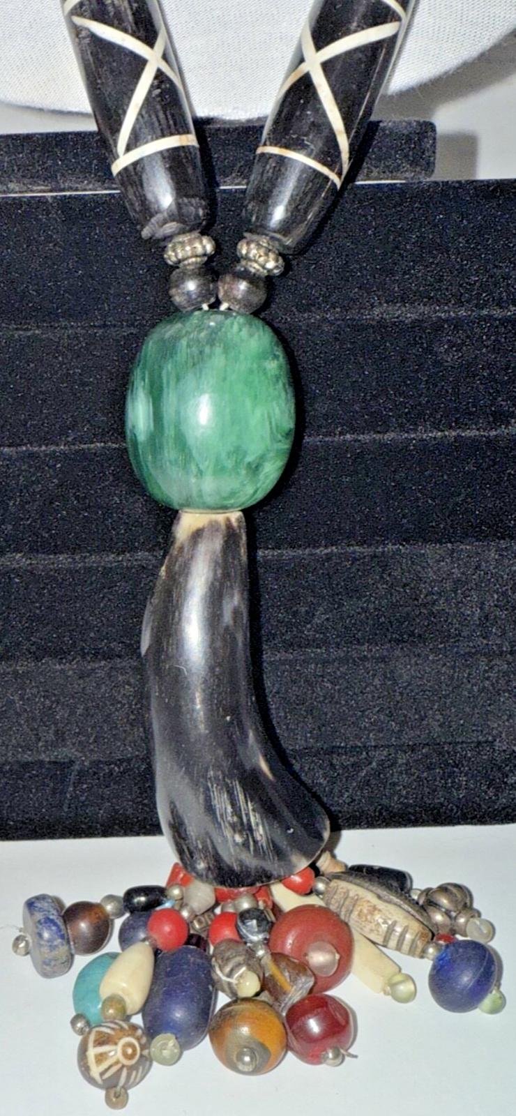 Antique 1850-1900s Tibetan Cow Batik Bone Ram Horn Ceremonial Necklace