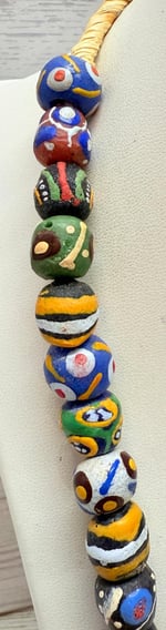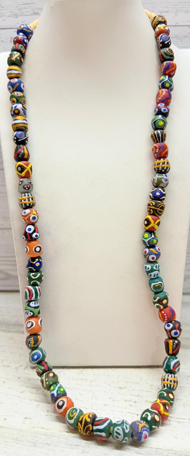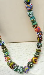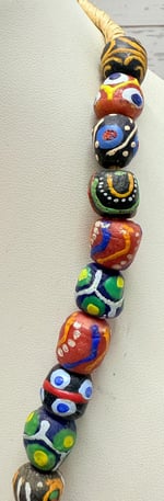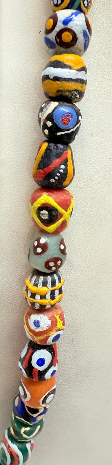 Antique 1900s African Hand Painted Venetian Millefiori Trade Beads Necklace