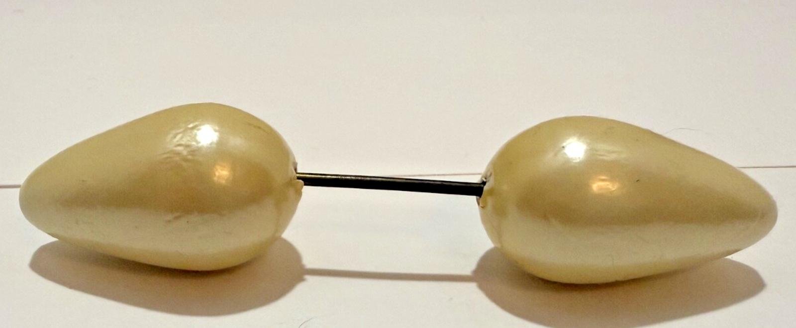 Antique 1920s Beige Pearlescent Art Deco Modernist Wooden Enamel Stick Pin