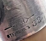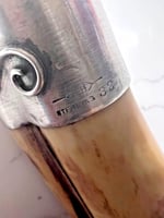Sterling Silver Cap on end of Boars Tooth is firm attached & is marked with "Sterling", the number 32, & the signature of the maker JH - John Hasselbring.