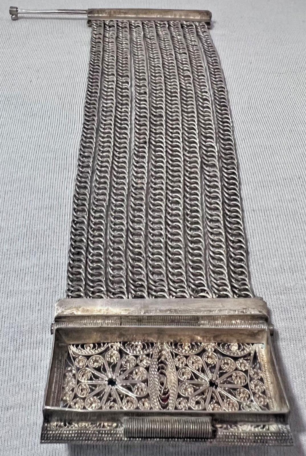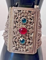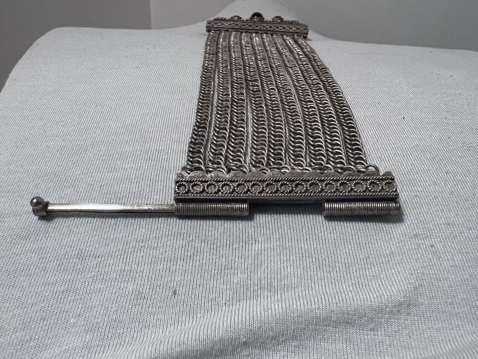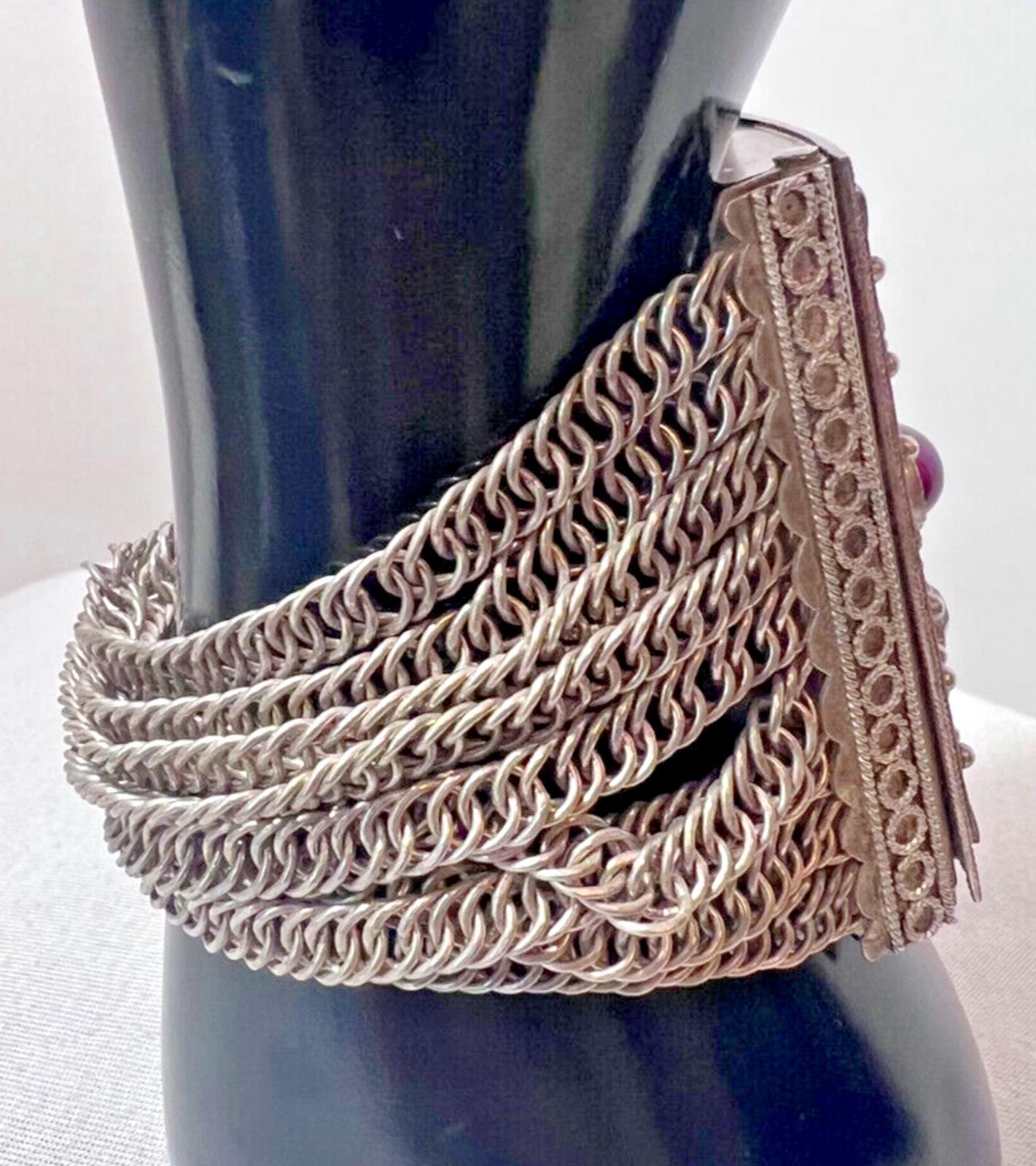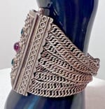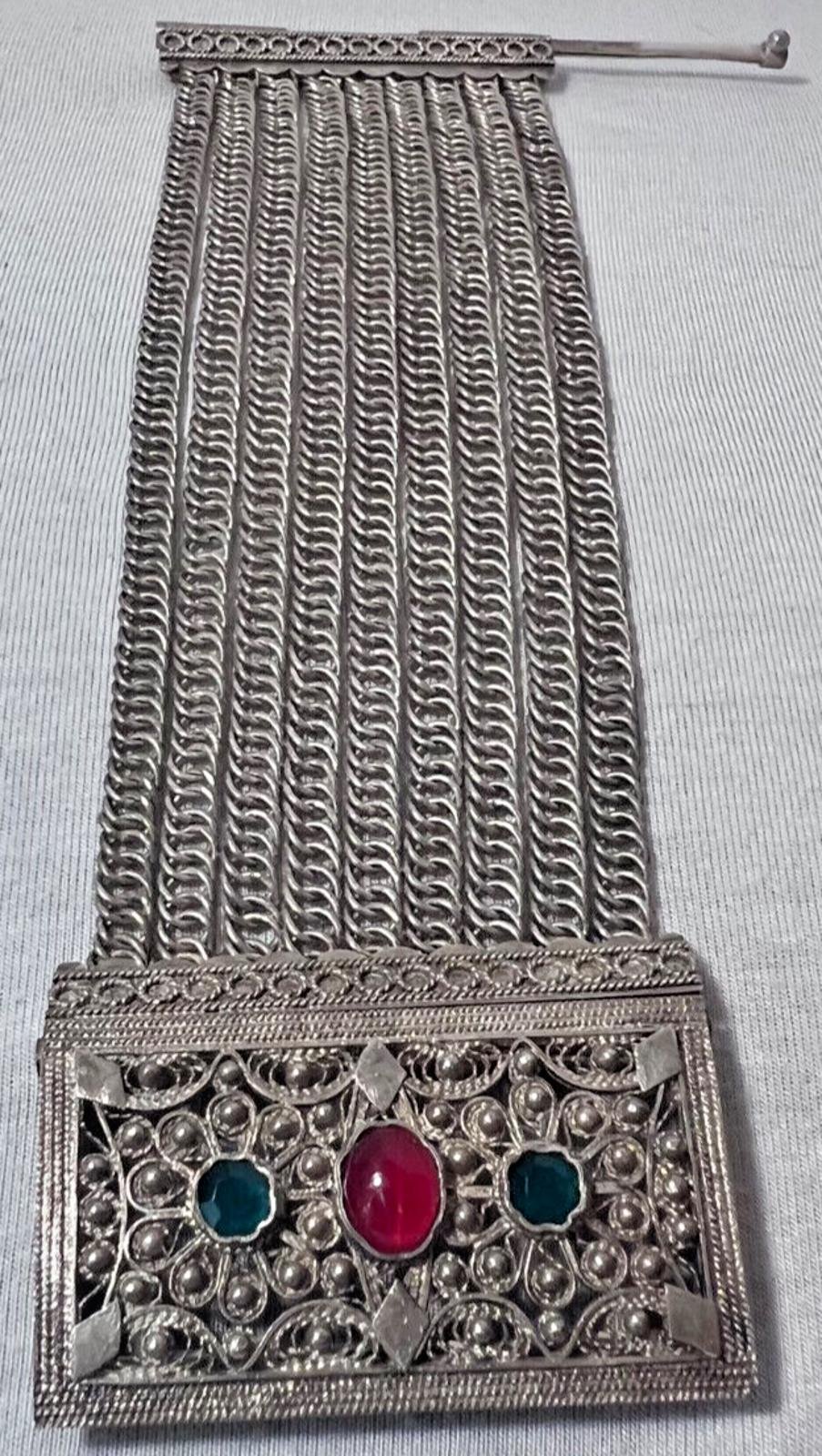 Antique Pre-1790s Bosnian Wedding Bracelet Handmade 925 Red Green Paste Stones
