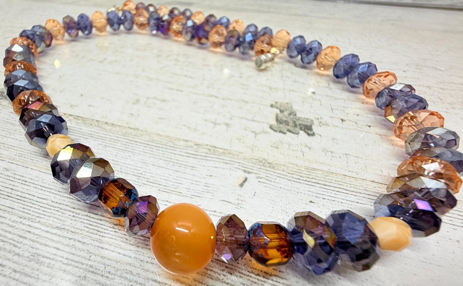 TamiLyn Original! Handmade Necklace Vintage 1920-40s Peach & Purple Czech Glass