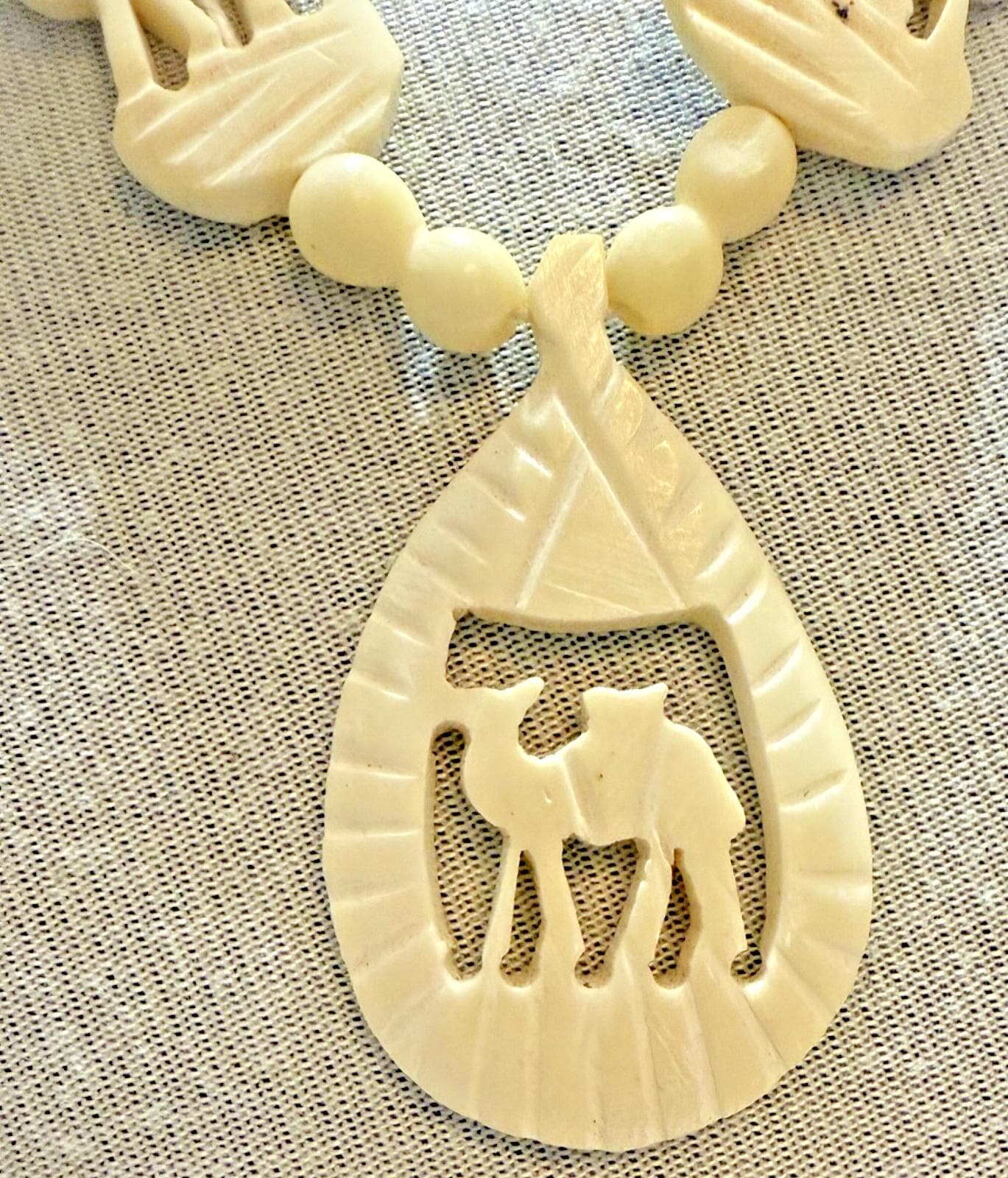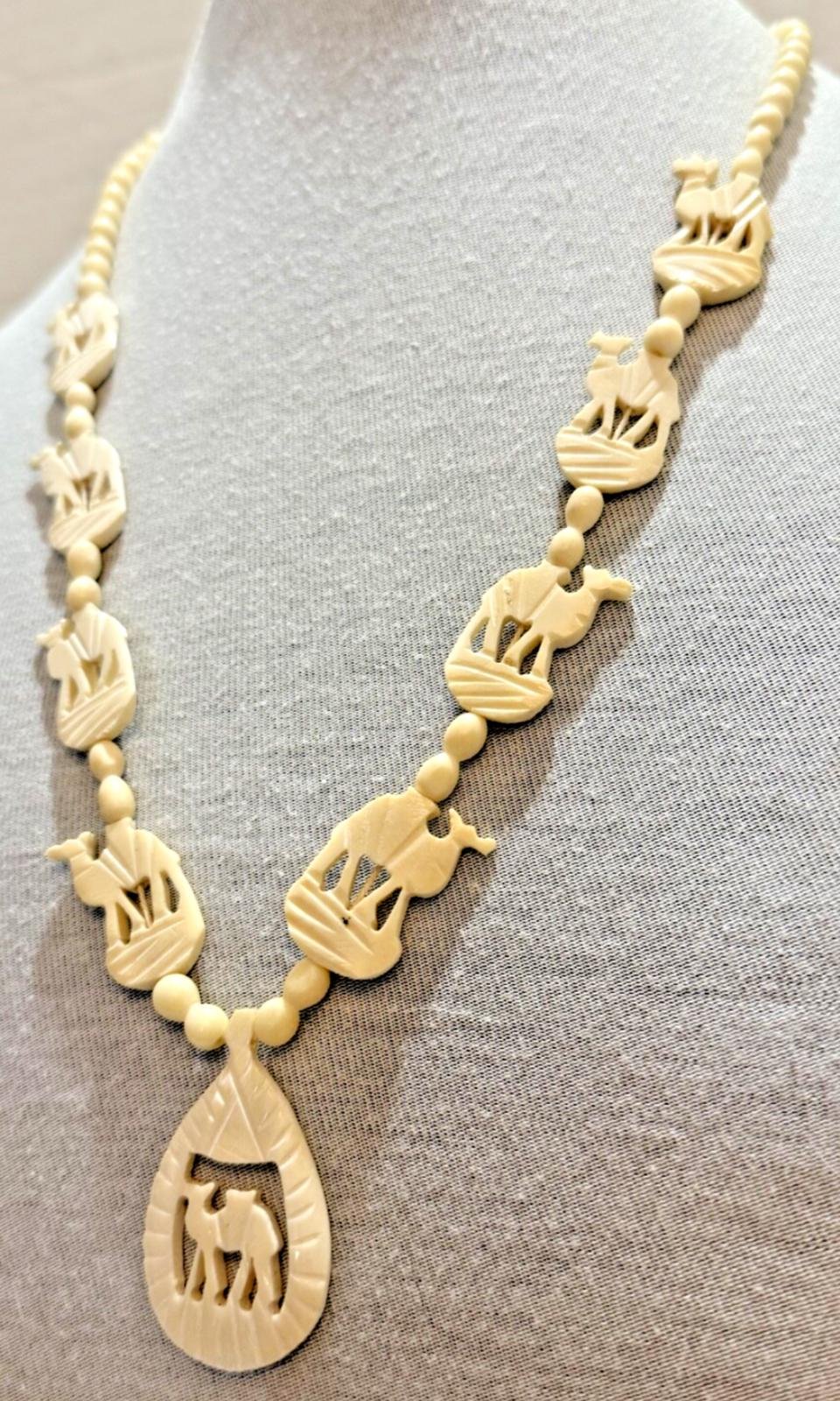 Vintage 1930s Carved Deer Antler Camel Necklace