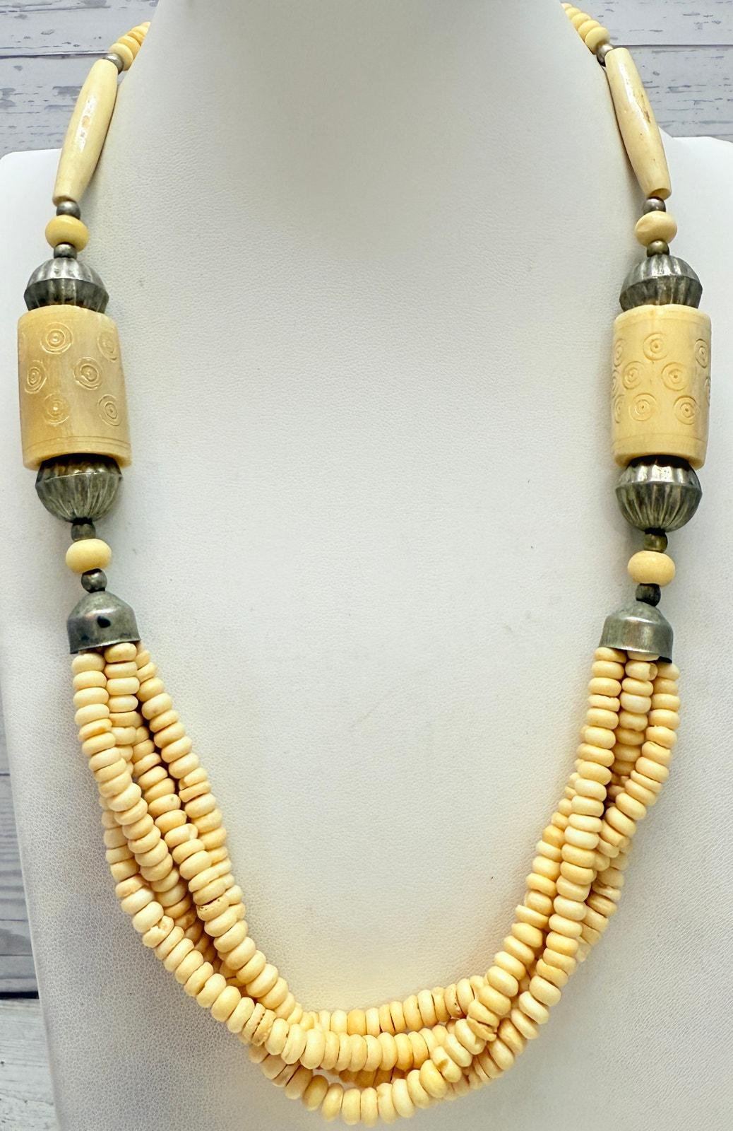 Vintage 1940s African Carved Antler & Bedouin Silver Beads