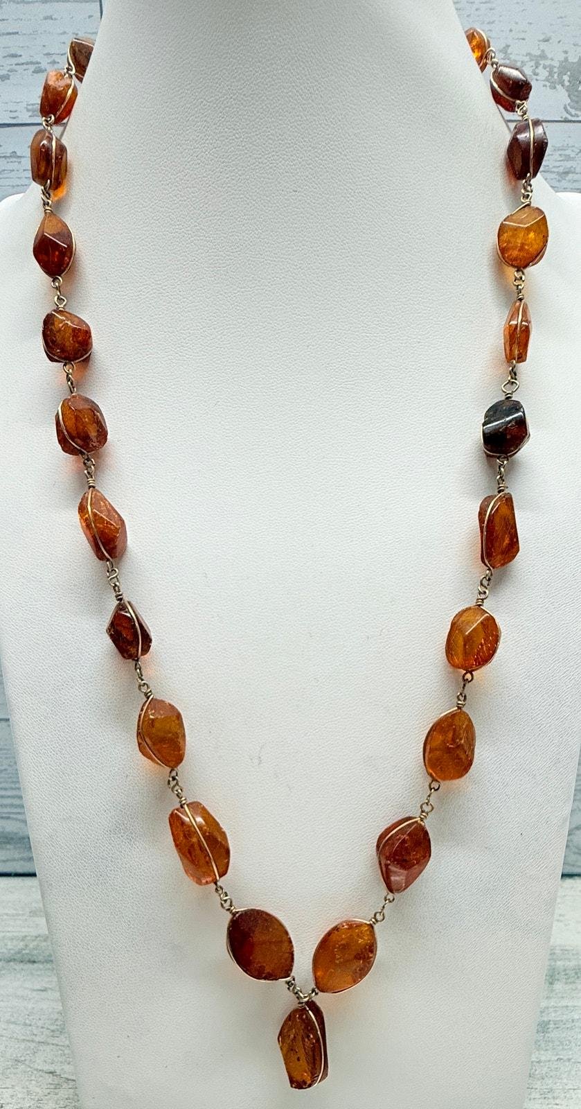 Vintage 1940s Baltic Am ber Inclusions Wire Wrap Cabochon Shape Neckalce