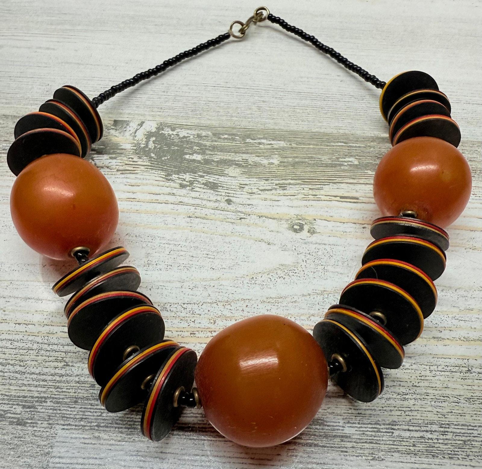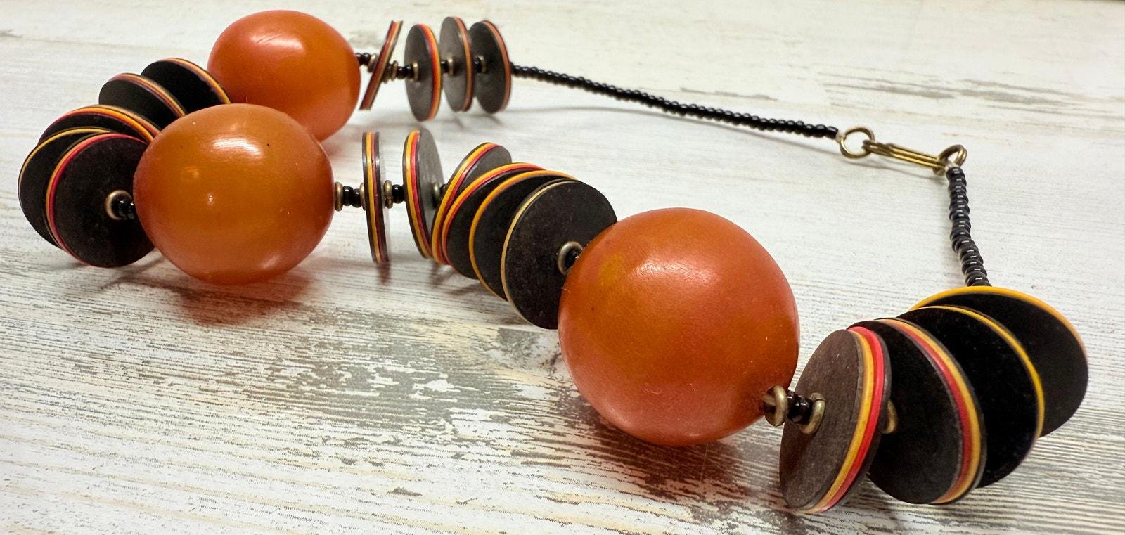 Vintage 1940s RARE Cherry Amber Butterscotch Bakelite & Wood Beaded Necklace