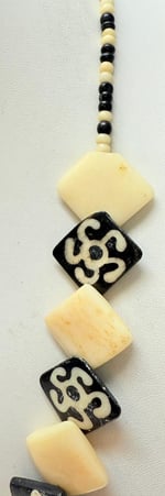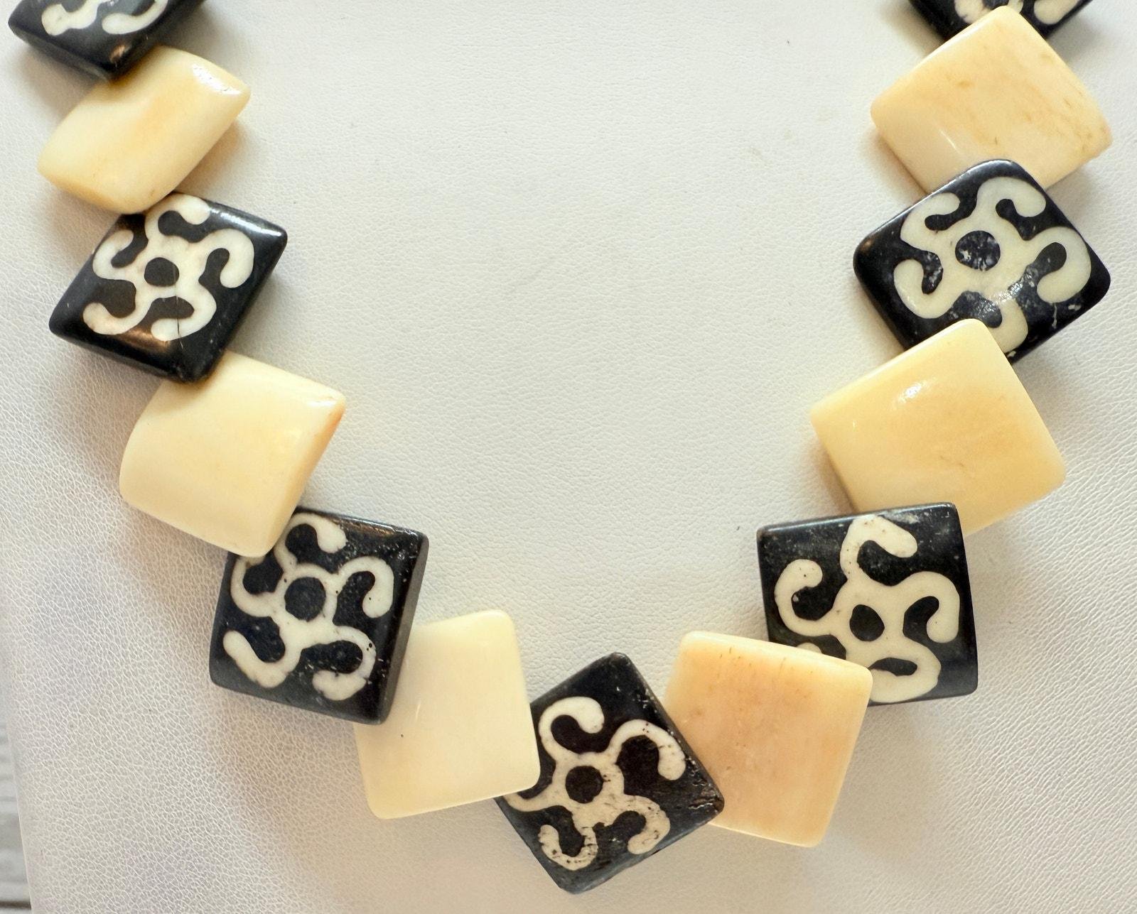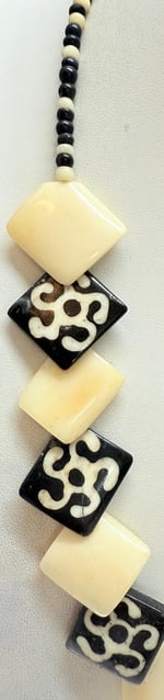 Vintage 1950s African Antler Batik Design Black & White Necklace