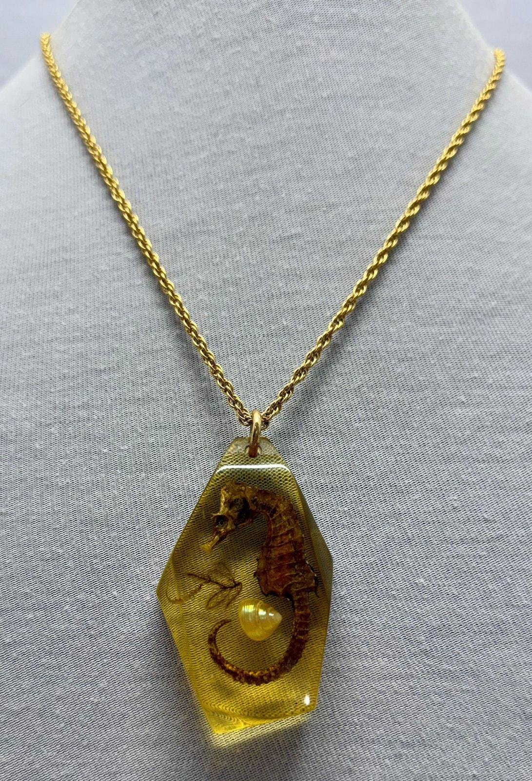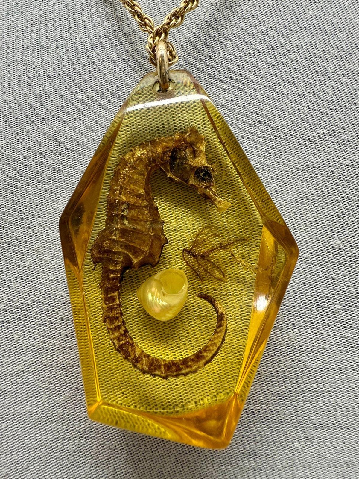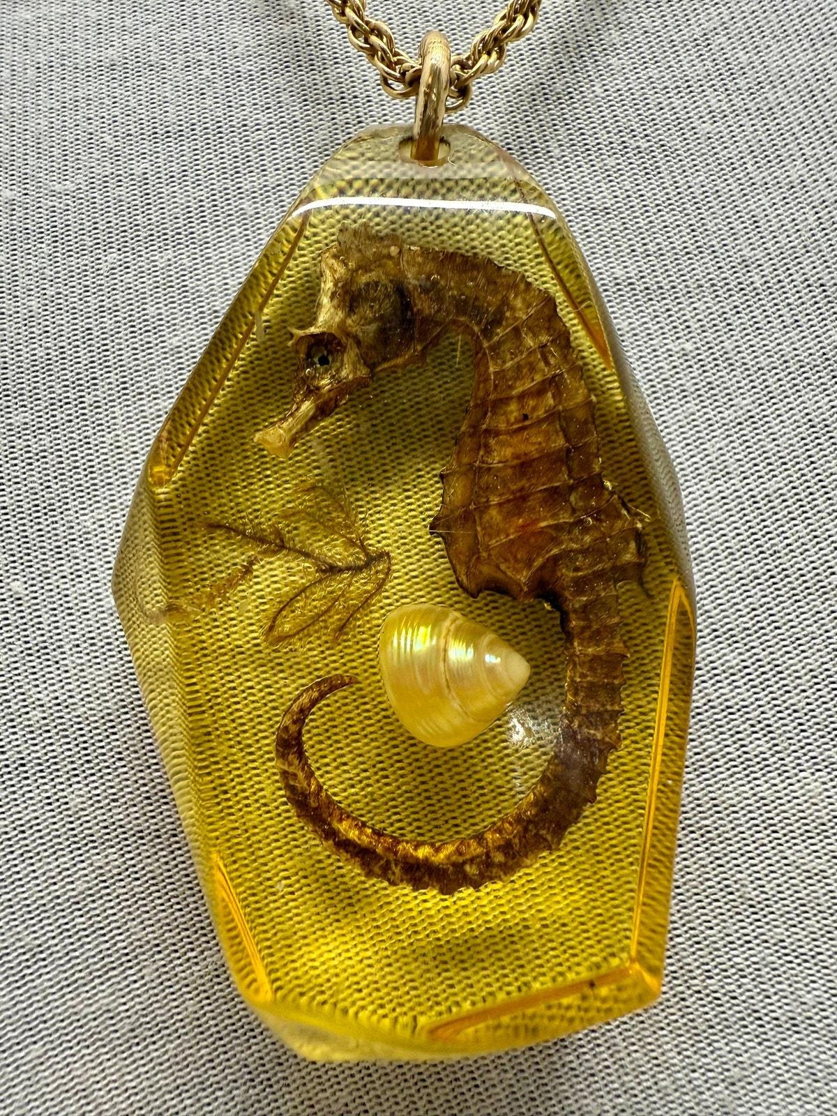 Vintage 1960s Art Deco Celluloid Seahorse Pendant/Necklace
