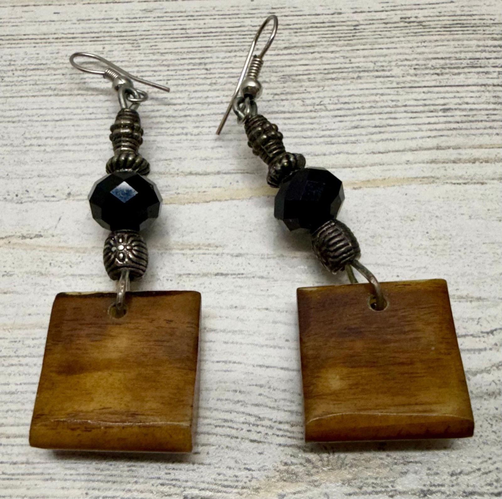 Vintage 1970s African Batik Bone Earrings