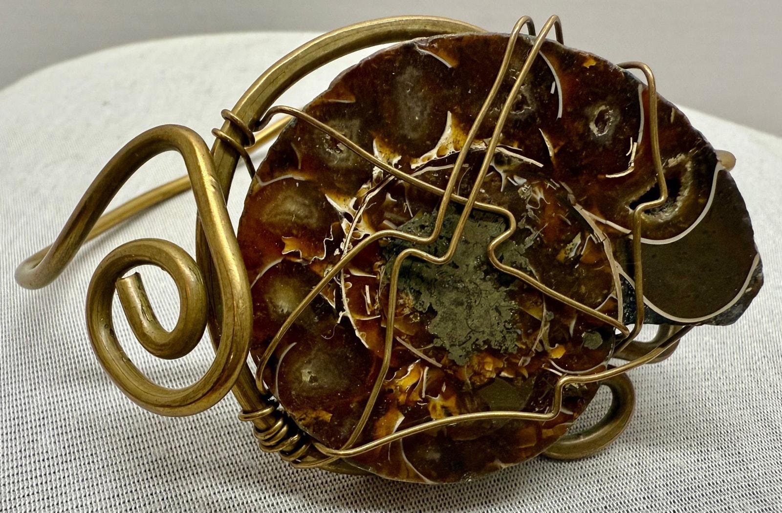 Ammonite Fossilized Shell & Brass Artisan Bracelet