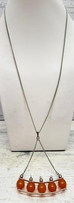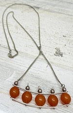 Vintage 1970s Honey Am ber Beads & USSR Silver Necklace