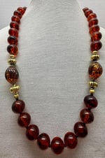 Faux Amber Lucite Root Beer Ball Bead & Gold Tone Necklace