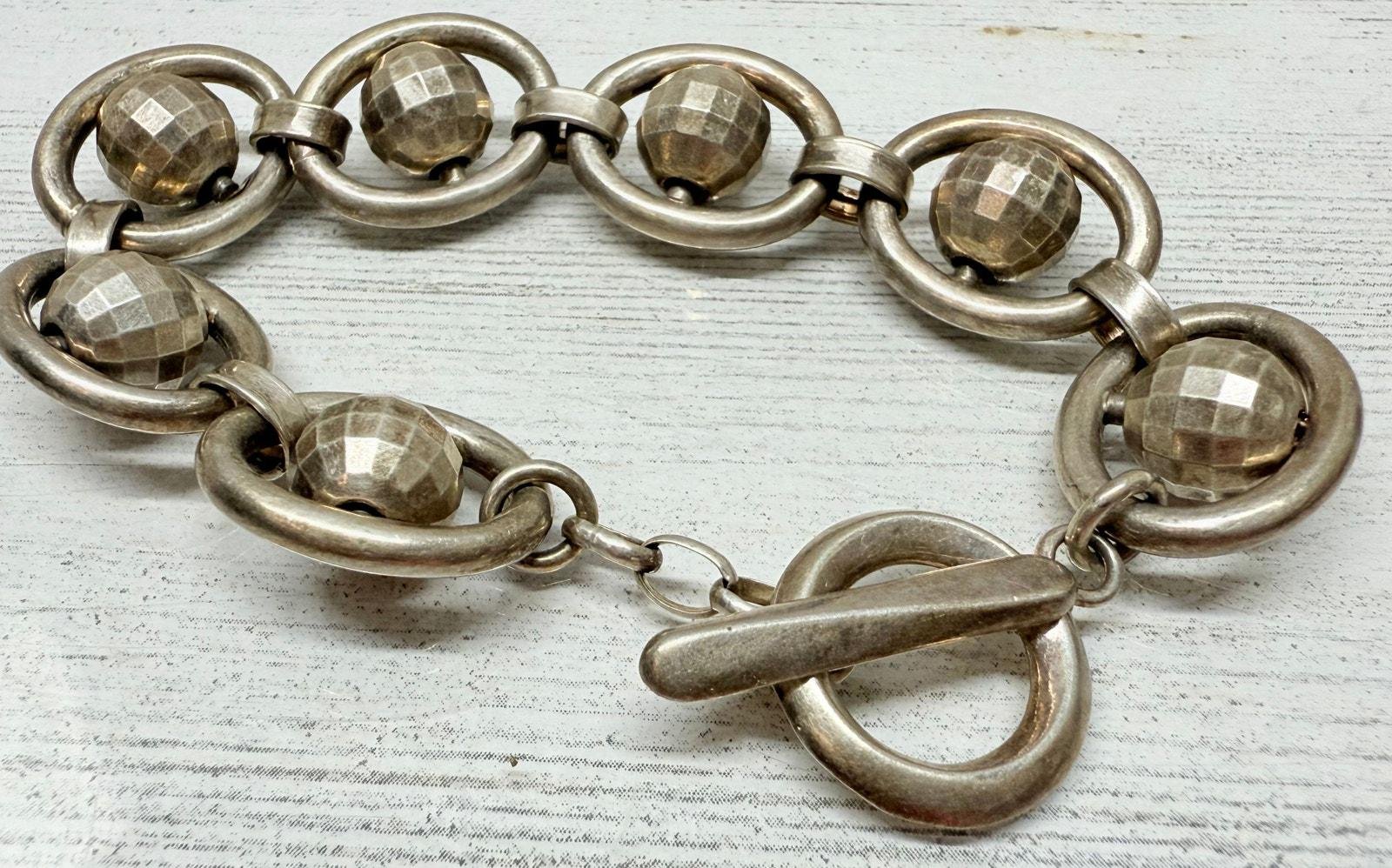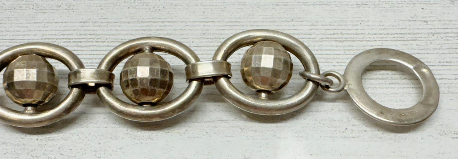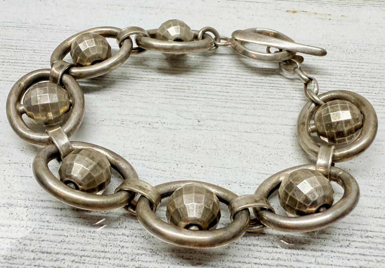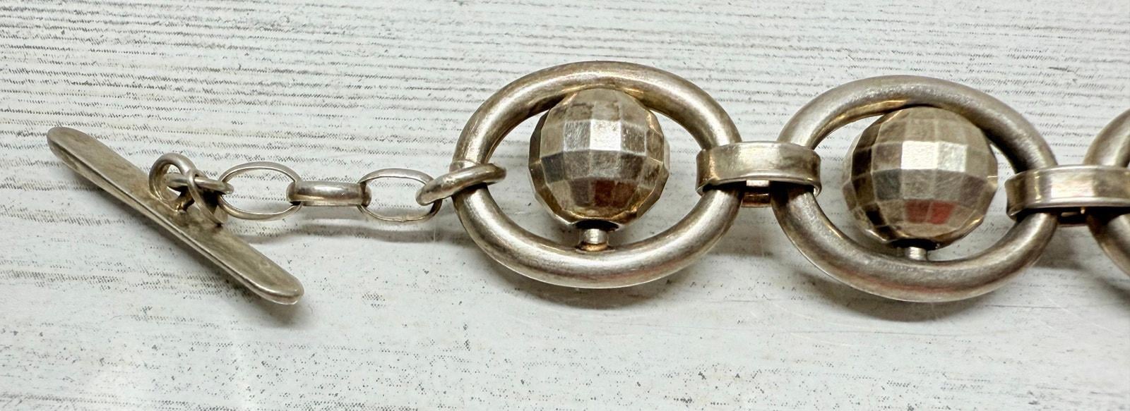 Vintage 1980s Italian 925 Silver Spinning Disco Ball Link Bracelet