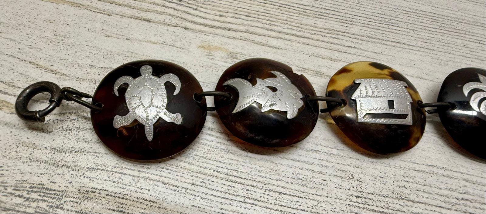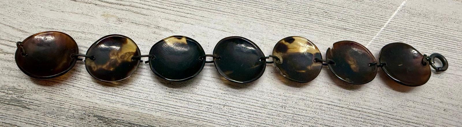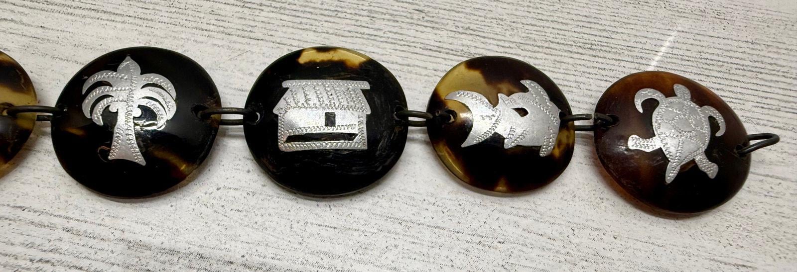 Vintage WWll South Pacific Faux Tortoise Shell Silver Tone Bracelet